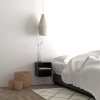 Noční stolek Joliet má kompaktní obdélníkový tvar a černý design. Otevřená přihrádka a zásuvka nabízí praktický úložný prostor. Možnost montáže na zeď šetří místo. Vhodný do moderních a industriálních ložnic.