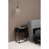 Černá ocelová podnož s práškově lakovaným povrchem je navržena s důrazem na stabilitu a vizuální lehkost. Čtvercový profil nohou působí subtilně, ale pevně, přičemž plstěné podložky na spodku nohou chrání podlahu před poškozením. Stolek má kompaktní rozměry 40 × 30 × 61,5 cm, díky čemuž se pohodlně vejde vedle většiny postelí. Výška nohou 44,8 cm zajišťuje komfortní přístup k zásuvce a celková nosnost je až 20 kg.