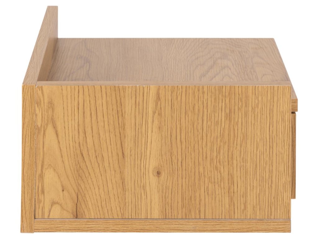 Nástěnný noční stolek Ashlan B v dekoru divokého dubu šetří místo a nabízí praktické úložné řešení. Obsahuje zásuvku s plným výsuvem a díky oboustranné montáži se snadno přizpůsobí dispozici vaší ložnice.
