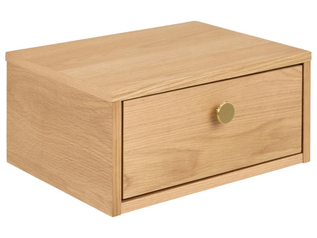 Nástěnný noční stolek Monfort v dubovém provedení přináší čistý, moderní a přirozený vzhled. Povrch z lakované dubové dýhy zvýrazňuje strukturu dřeva, zatímco praktická zásuvka nabízí ideální místo pro drobnosti. Kompaktní, elegantní a snadno kombinovatelný s širokou škálou interiérů.