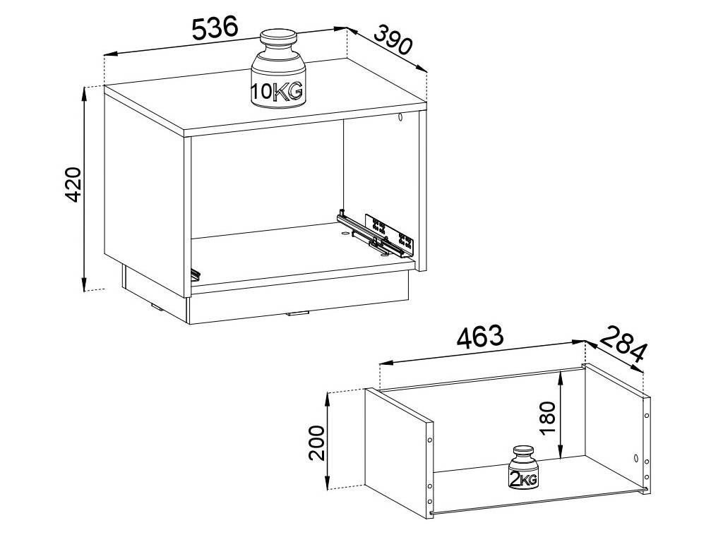 Laminovaná deska o tloušťce 16 mm a 0,5 mm ABS hrany poskytují stolku pevnost a odolnost. Přední část je z frézované 18 mm MDF desky, která svým detailním opracováním dodává nočnímu stolku stylový vzhled. Stolek Roma můžete umístit buď přímo na zem, díky pevnému 18 mm MDF soklu s plastovými kluzáky, nebo jej zavěsit na zeď pro ještě modernější vzhled a ušetření místa.