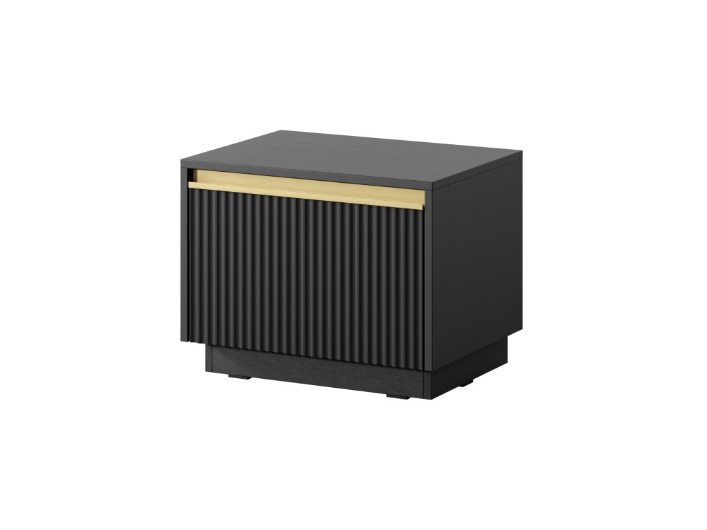 Noblesní noční stolek Roma dodá vašemu prostoru nádech svůdnosti. Vyniká černým grafitovým designem se zlatými detaily, které vytváří výrazný vzhled. Promyšlený design a praktický úložný prostor zaručují funkčnost i estetiku. Ideálně zapadne do ložnice, kde přidá styl a půvab.