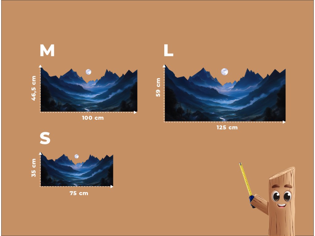 Obraz zachycuje tajemnou noční scenérii, kde jasný měsíc ozařuje ostrý horský hřeben a vrhá jemné stíny do údolí s řekou. Scéna je laděna do tmavě modrých a fialových tónů, které umocňují pocit klidné samoty a ticha přírody. Jemná mlha v pozadí dodává dílu snovou hloubku a meditativní atmosféru.