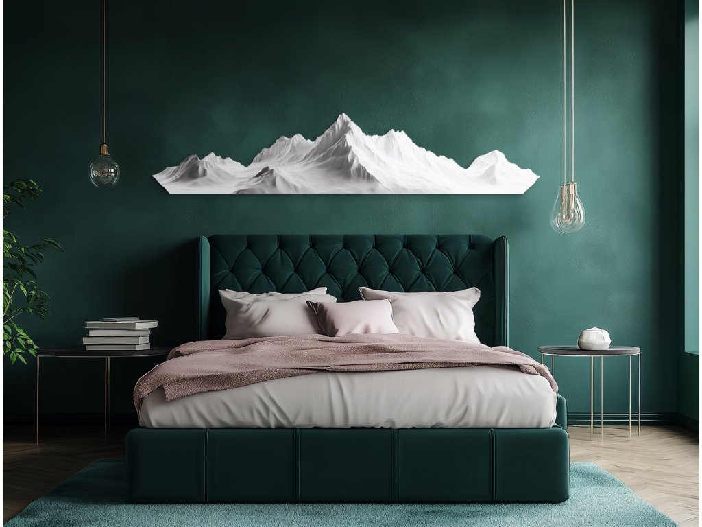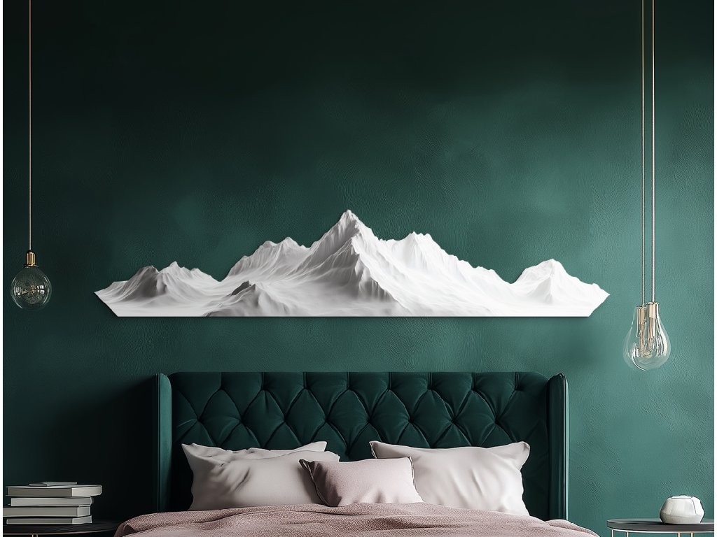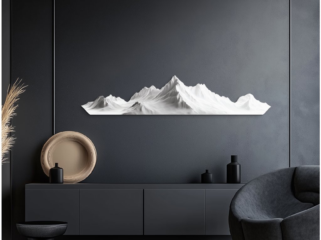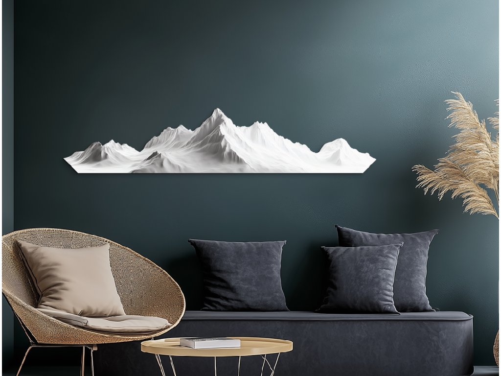 Elegantní obraz se zasněženým pohořím v minimalistickém stylu zachycuje klid, sílu a majestátnost přírody. Jemně modelované bílé vrcholy hor působí realisticky, ale zároveň zachovávají čistotu a jednoduchost tvarů. Tento obraz symbolizuje rovnováhu, harmonii a nadčasovou krásu hor, díky čemuž se stane nápadným, ale zároveň uklidňujícím prvkem interiéru.