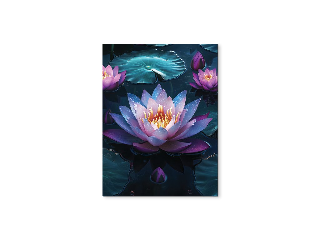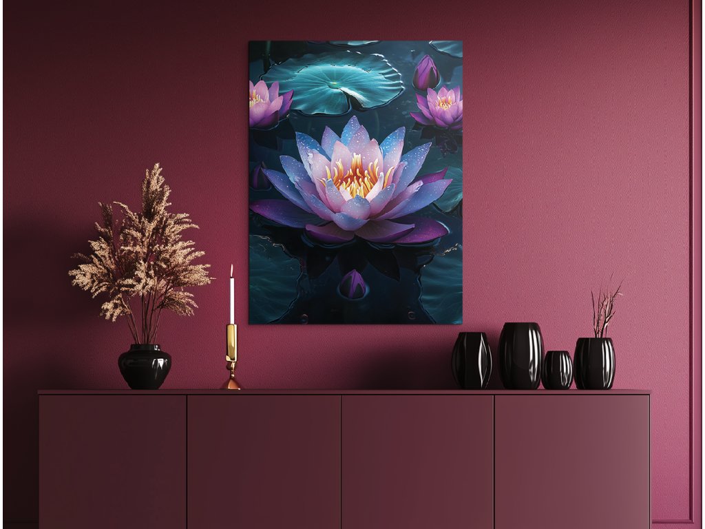 Leknín na jezeře je obraz s jemnou a vyváženou kompozicí, který zachycuje krásu osamělého leknínu plovoucího na klidné hladině. Odrazy světla na vodě a jemné tóny obrazu vytvářejí pocit ticha, míru a spojení s přírodou. Ideální doplněk do ložnice, koupelny nebo oddechové zóny, kde navodí harmonickou atmosféru.