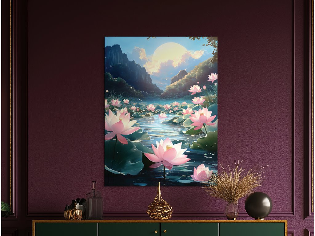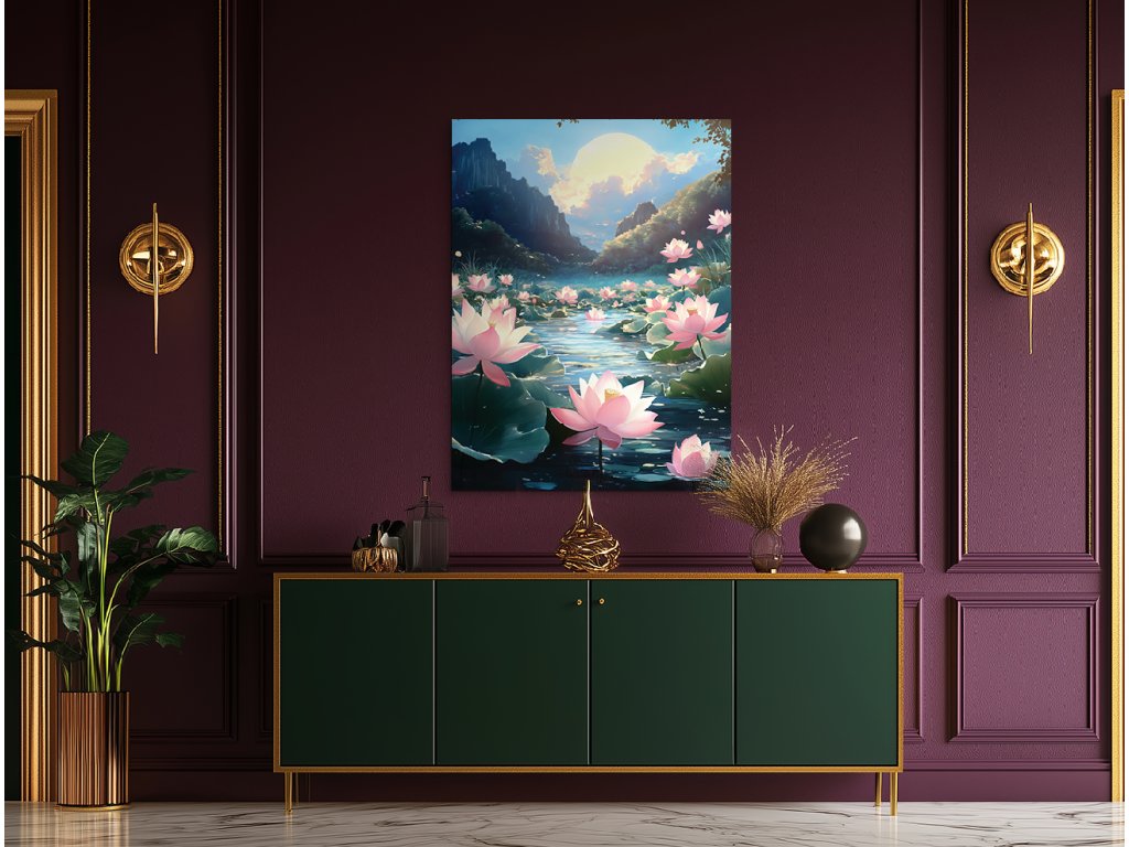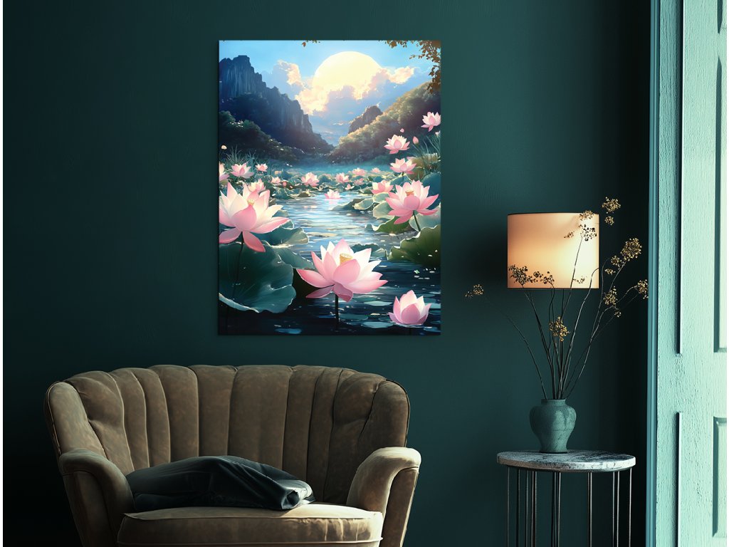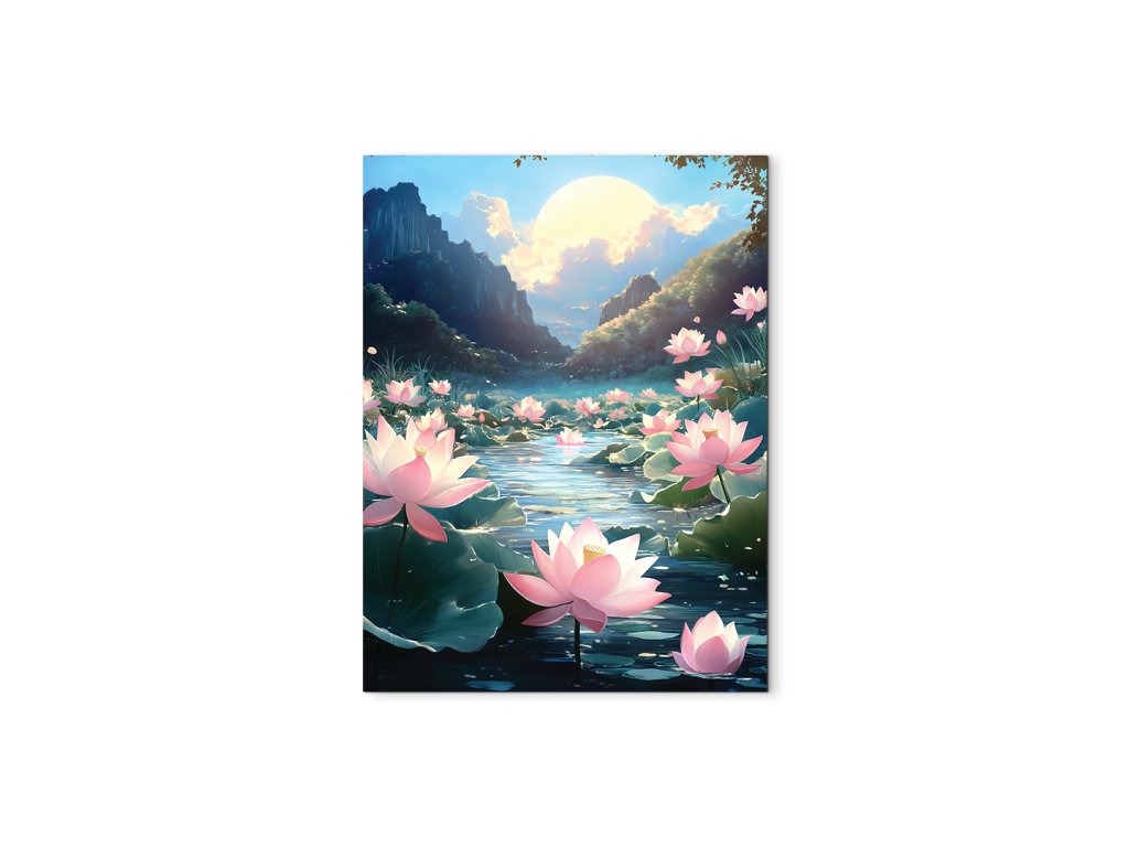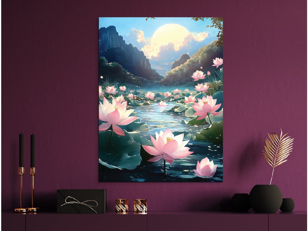 Pohádková leknína je okouzlující obraz, který působí jako výjev z kouzelného světa – jezero plné leknínů se rozprostírá pod majestátními horami, celé zalité jemným světlem a snovou atmosférou. Malba má pohádkový nádech, který probouzí fantazii a klidně působí jako brána do tichého, kouzelného světa přírody. Skvěle vynikne v ložnici, čtenářském koutku nebo dětském pokoji se snovou náladou.