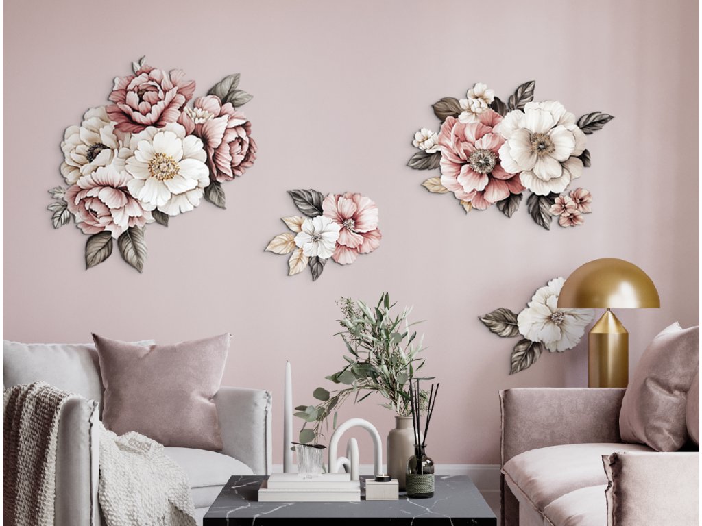 Romantická nástěnná dekorace s motivem růžových a bílých květů vytváří něžnou a harmonickou atmosféru v prostoru. Jemné odstíny a květinový motiv působí elegantně, svěže a navozují pocit klidu i útulnosti. Ideální doplněk do interiéru, který touží po doteku přírody a romantiky.
