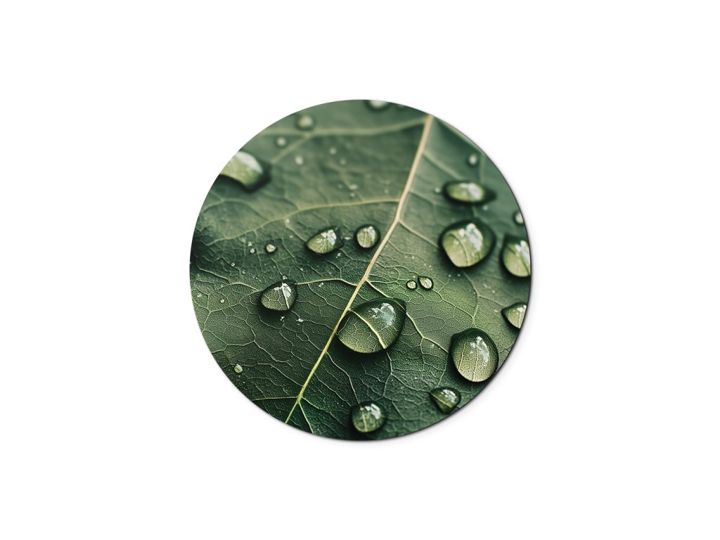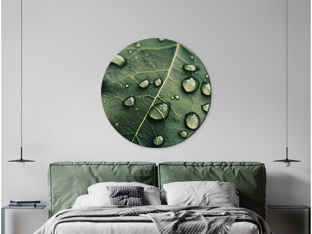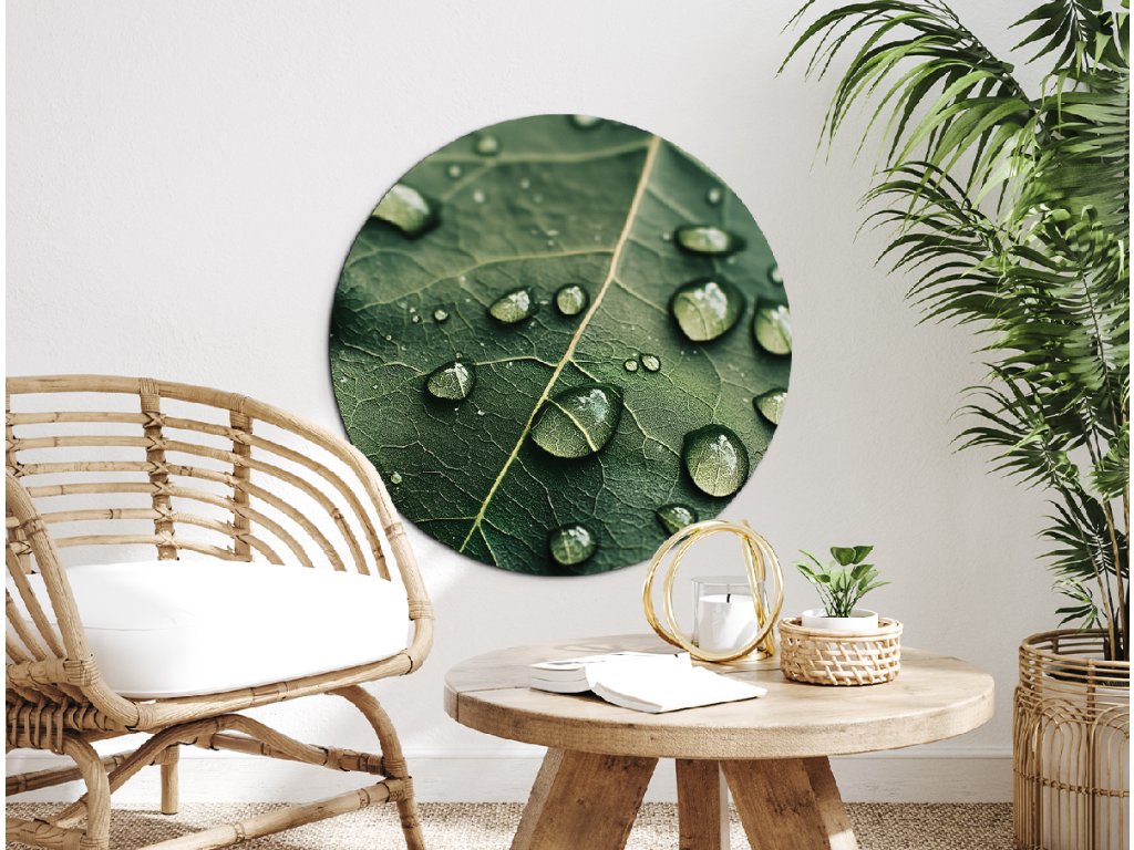 Kulatý obraz Rosa nabízí detailní pohled na list s jemnou rosou, jakoby zachycený okamžik ranního ticha. Přírodní výřez v kruhovém formátu působí harmonicky a vnáší do prostoru svěžest a klid.
