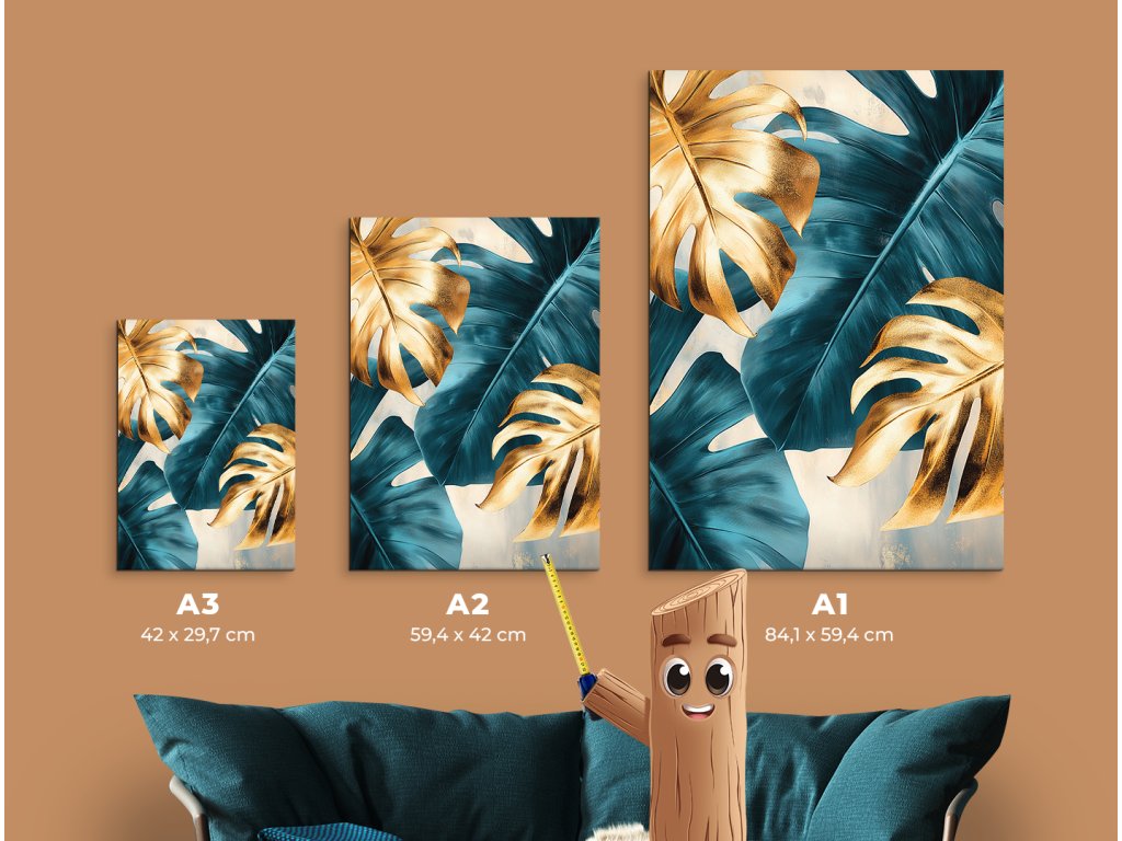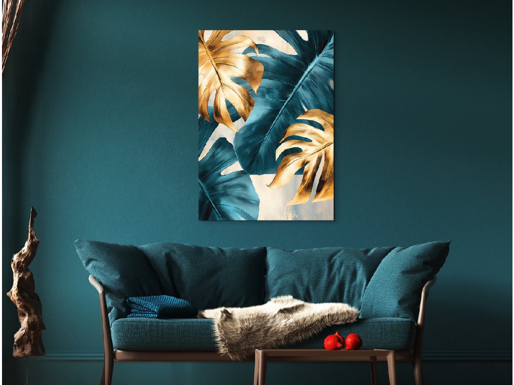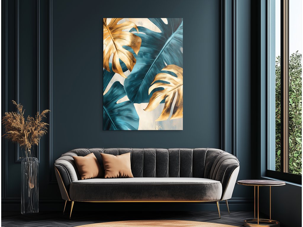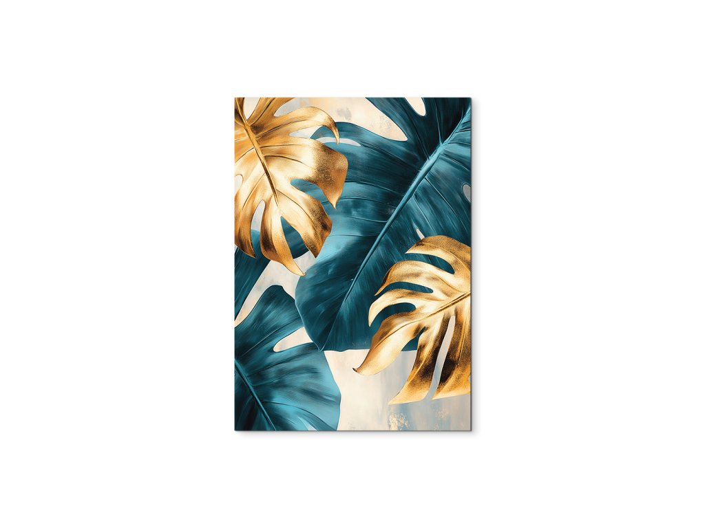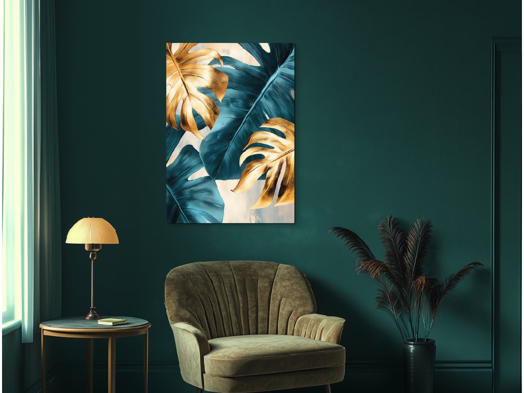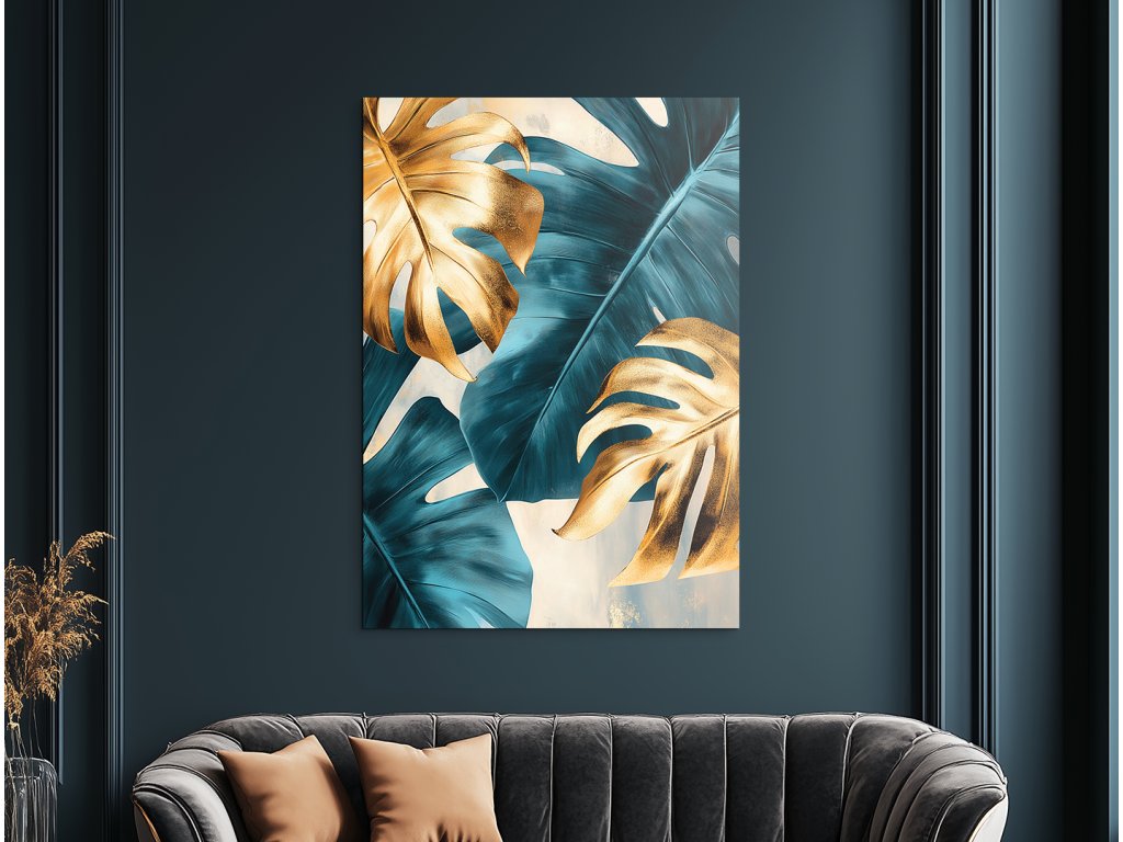 Listy monstery v moderním zpracování přinášejí svěží pohled na tropické motivy – zelené a zlaté listy jemně vystupují z tlumeného pozadí. Zajímavý odstín zeleně dodává obrazu hloubku a eleganci. Ideální doplněk na stěnu obývacího pokoje nebo ložnice, kde vynikne jeho klidná energie.