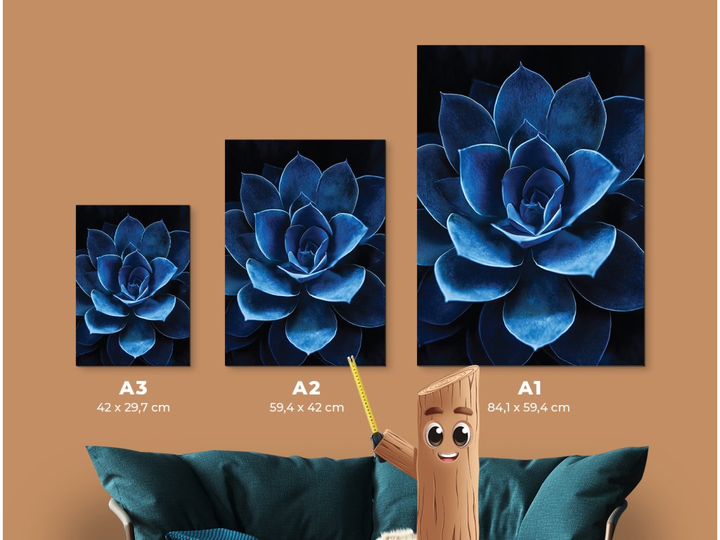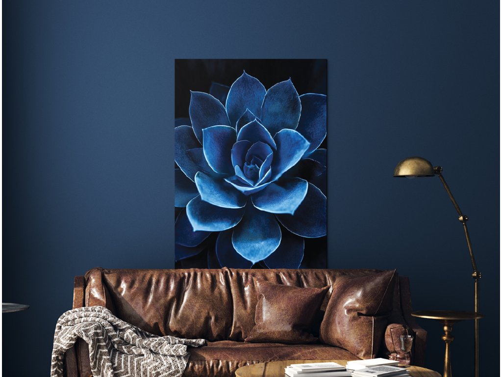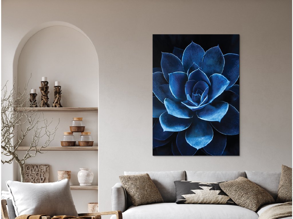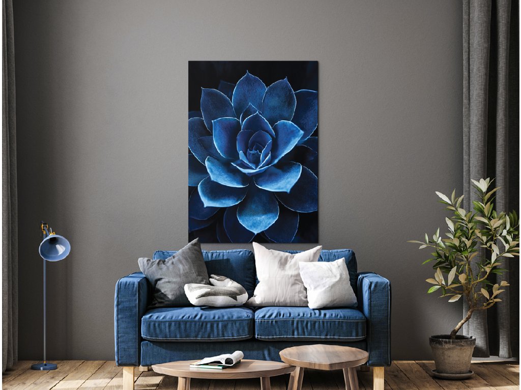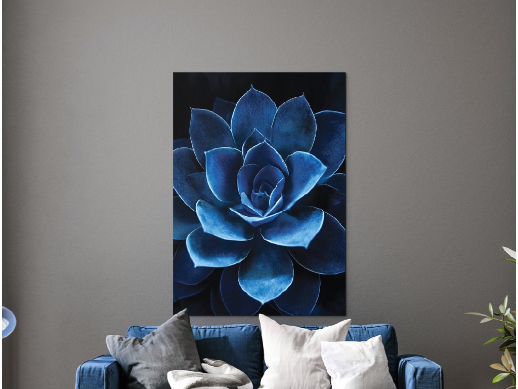 Modrý sukulent je dekorační obraz s výrazným kontrastem syté modré barvy a černého pozadí, který okamžitě přitáhne pozornost. Detailní zobrazení listů sukulentu působí moderně, čistě a zároveň elegantně. Perfektní jako stylový akcent na zeď v pracovně, chodbě nebo minimalistickém obývacím pokoji.