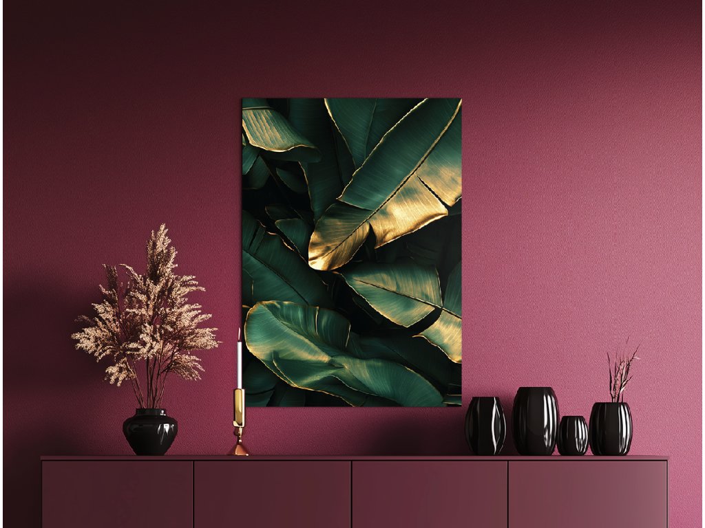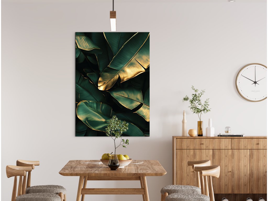 Sluncem zalité listy je obraz plný jemnosti a světla – zelené listy s nádechem zlatavé záře působí, jako by byly právě osvětleny teplými paprsky slunce. Kombinace svěží zeleně a zlatavého lesku vytváří harmonickou a uklidňující kompozici. Vhodný na zeď do ložnice, obývacího pokoje nebo prostoru, kde chcete navodit příjemnou, přírodní atmosféru.