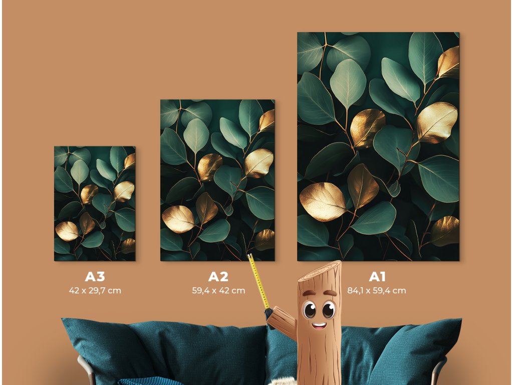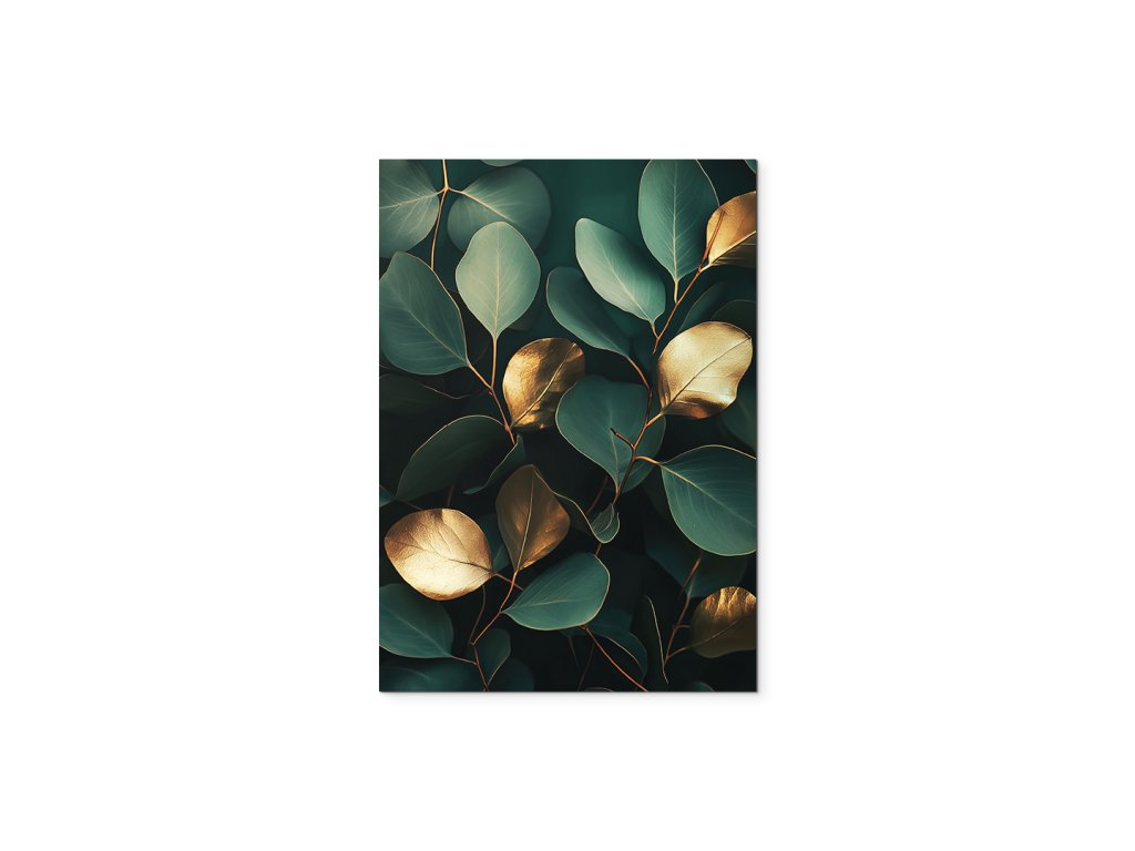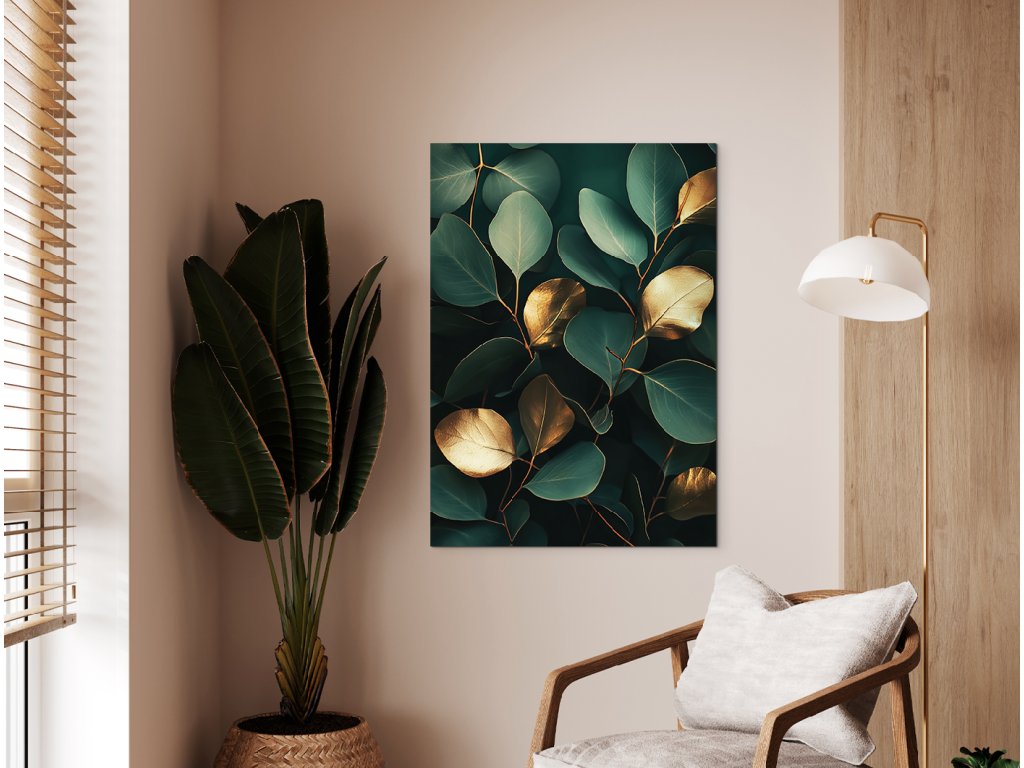 Zlatý eukalypt je dekorační obraz, který spojuje jednoduchost přírodního motivu s elegancí zlatého provedení. Větvička eukalyptu na neutrálním nebo tmavém pozadí působí jemně, ale zároveň výrazně. Ideální doplněk do moderních interiérů – krásně vynikne v ložnici, koupelně či minimalistickém obýváku.