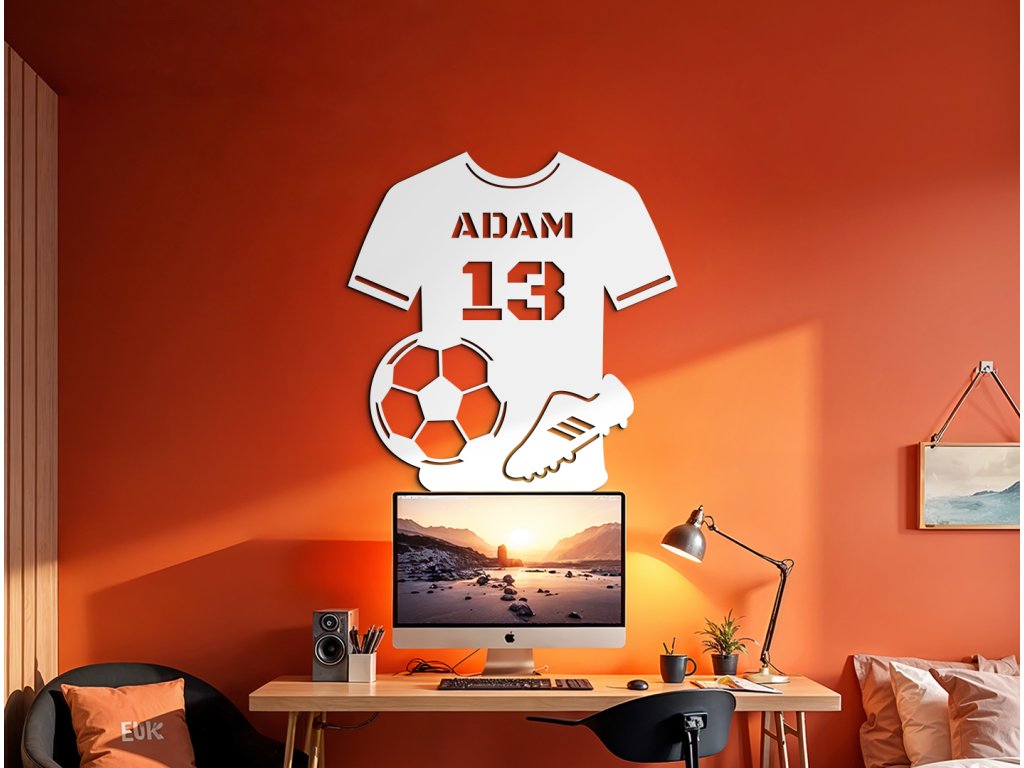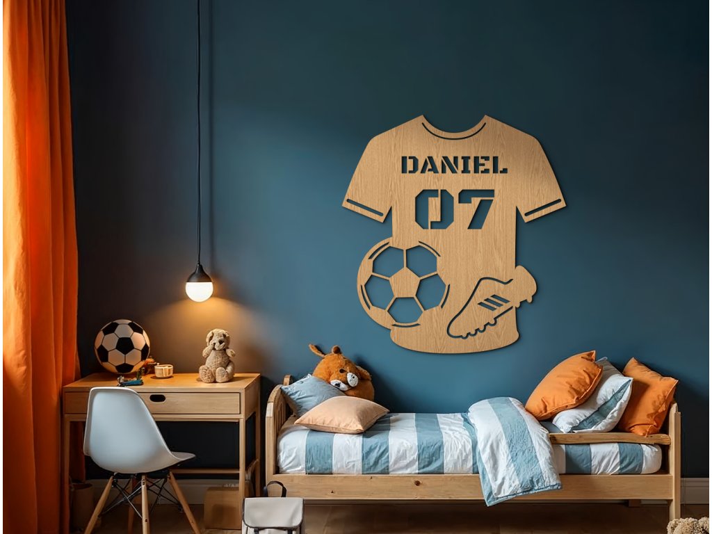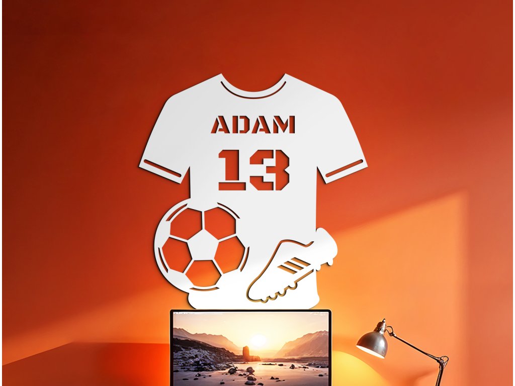 Dřevěný obraz Fotbalový dres na míru přináší možnost vytvořit si vlastní originál – s vaším jménem i číslem. Ideální dárek pro fotbalisty, fanoušky nebo celou rodinu, která žije sportem. Personalizovaná dekorace, která se stane hrdým centrem pozornosti každého pokoje.