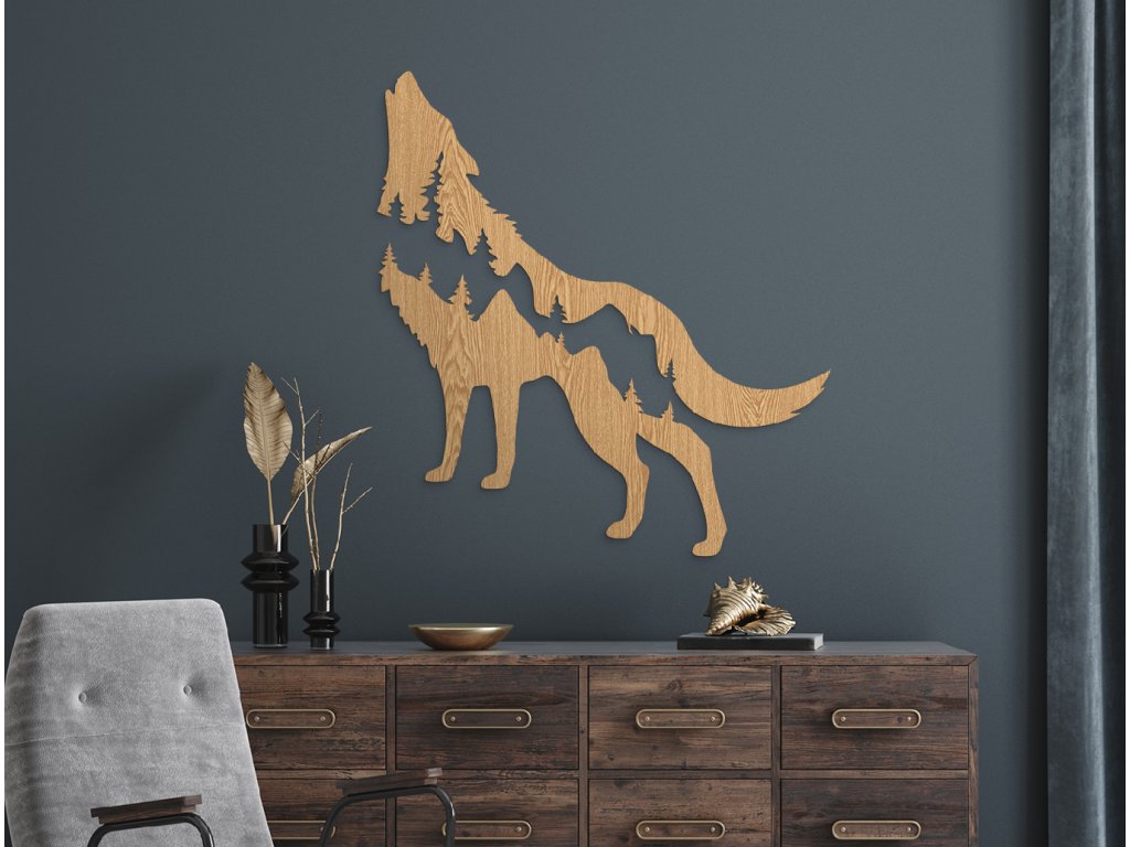 Dřevěný obraz zobrazující vlka a hory si jistě najde místo ve vaší domácnosti. Kromě toho, že se tento obraz hodí téměř do každé místnosti, je také skvělým dárkem. Díky rozdělení na dvě části vytváří pěkný efekt hory, která vytvoří příjemnou atmosféru ve vaší domácnosti.