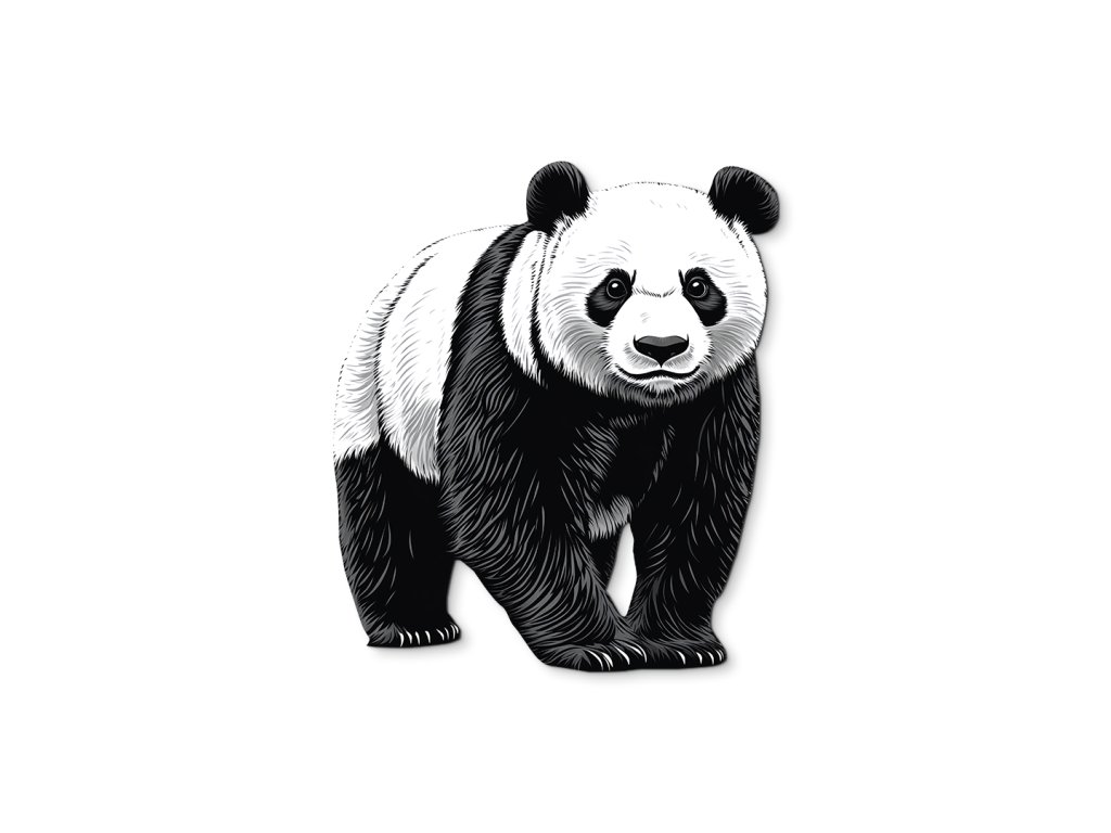 Detailně zpracovaná černobílá nálepka zobrazuje majestátní pandu v klidném postoji. Její klidný výraz a výrazná kresba srsti z ní dělají působivý prvek interiéru – symbol klidu, rovnováhy a přírodní krásy.