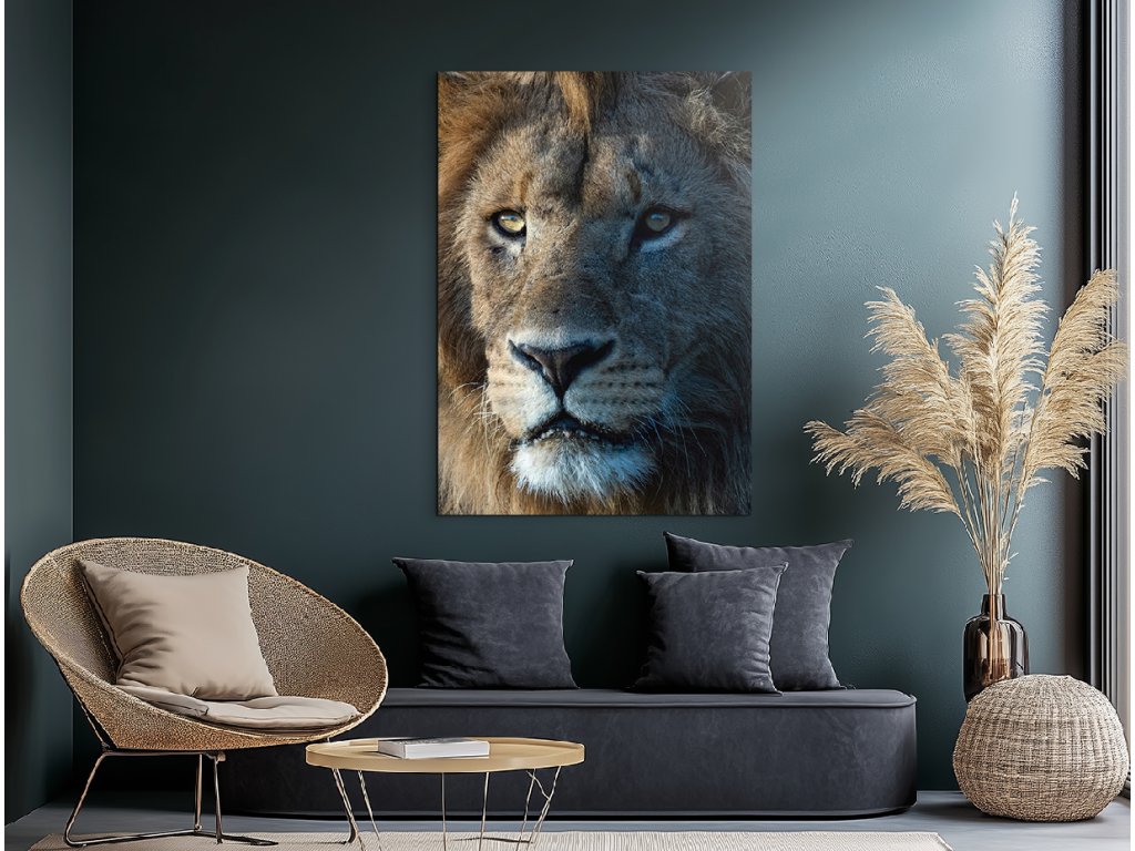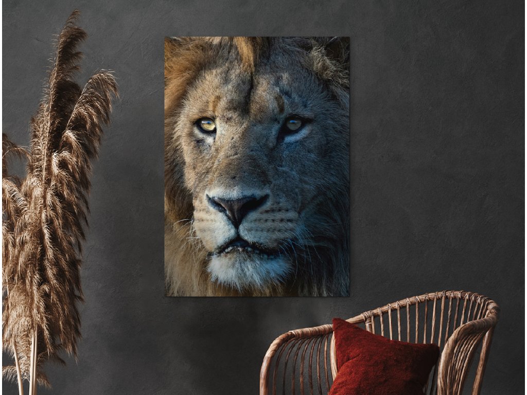 Lev král pouště je výrazná fotografie zachycující detailní portrét lva – vládce savany a symbol surové krásy přírody. Jeho pohled je klidný, ale pronikavý, plný autority a vrozené důstojnosti. Struktura srsti, jemné stíny a světlo vytvářejí realistický až monumentální dojem. Tento obraz působí jako ztišený výkřik divočiny – silný, přirozený a věčný.