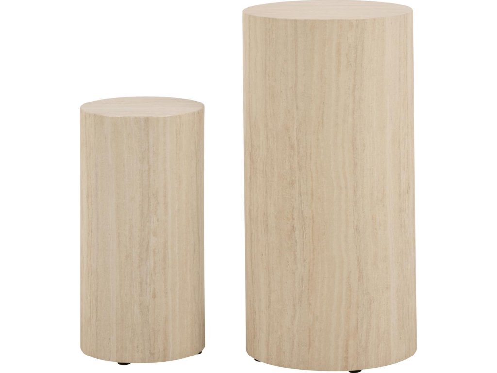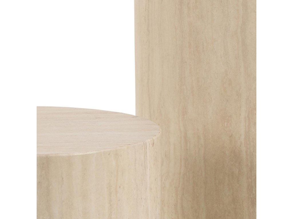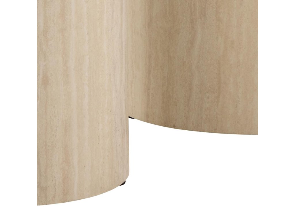 Souprava Dice se skládá ze dvou kulatých stolků v dekoru béžového travertinu. Travertinový design dodává noblesní nádech, který vynikne v každé místnosti. Stolky lze použít jako příruční či dekorační. Skvělé jako doplněk do obývacího pokoje.