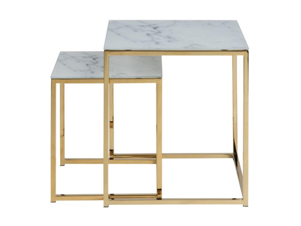 Set příručních stolků Alisma (2 ks) - bílý mramor / zlatá