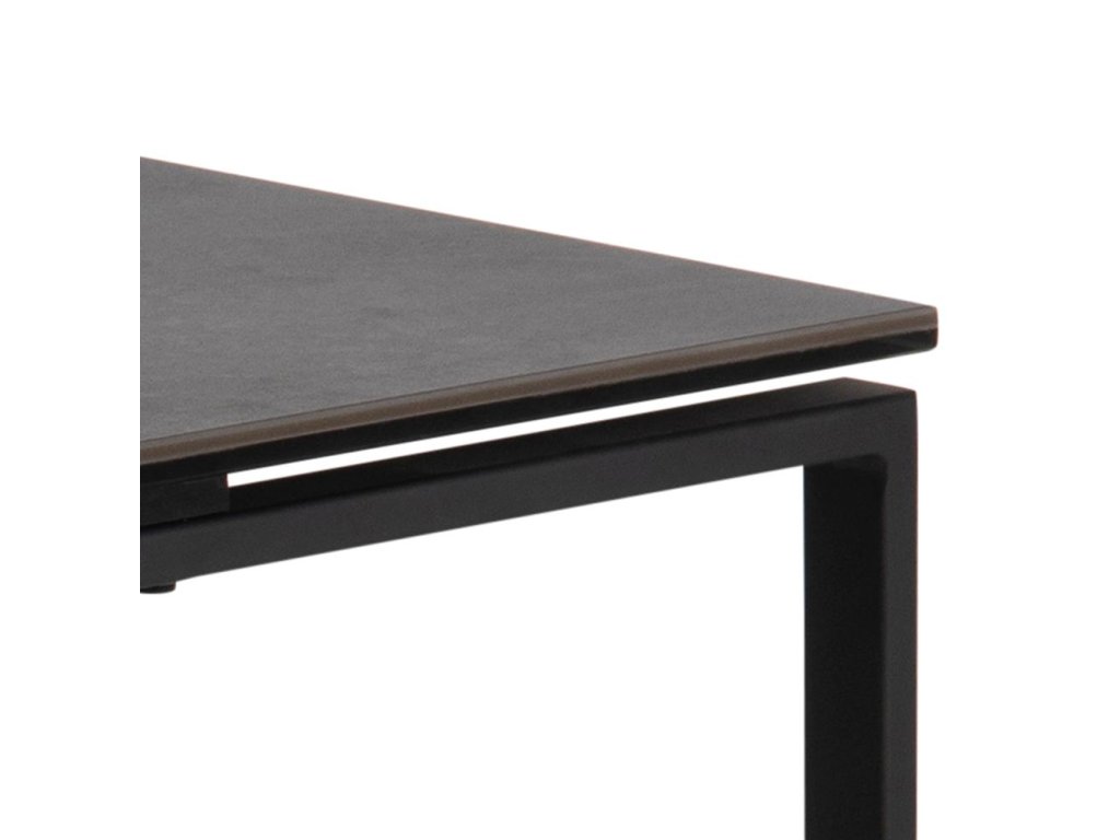 Pro ty, kteří hledají tmavý a robustní prvek do interiéru, je zde tato verze s keramickou deskou v odstínu černé Fairbanks. Matná černá kovová základna zajišťuje stabilitu a zároveň nechává keramický povrch vyniknout svojí texturou i odolností.