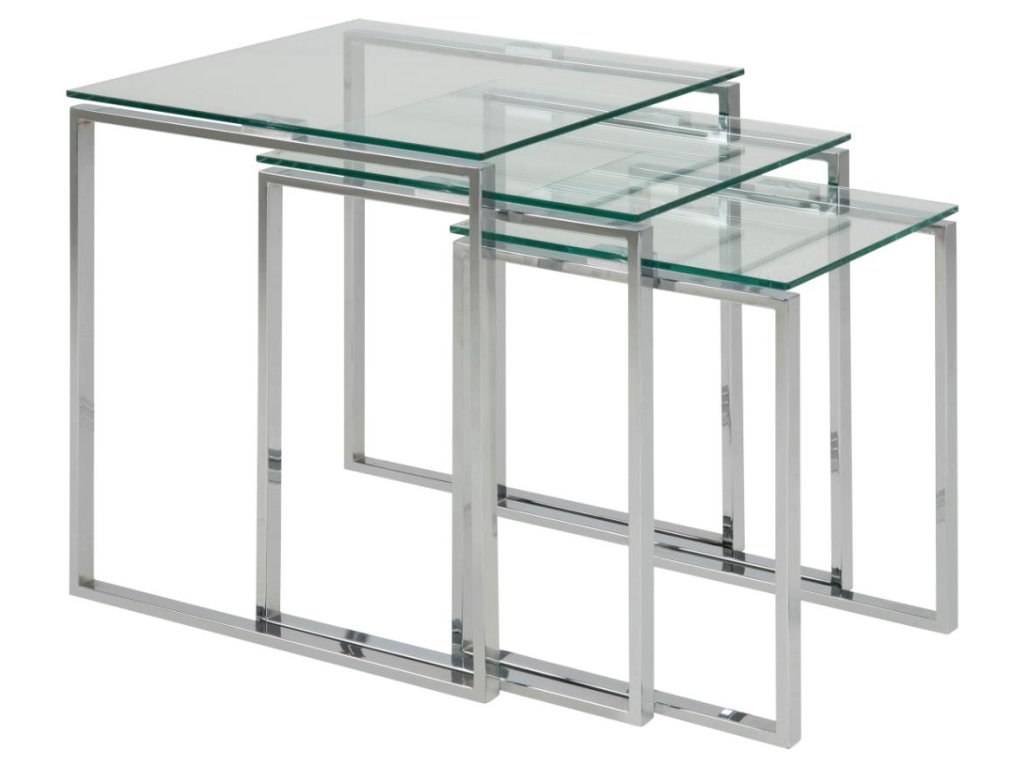 Set příručních stolků Katrine (3 ks) - čirá / chrom