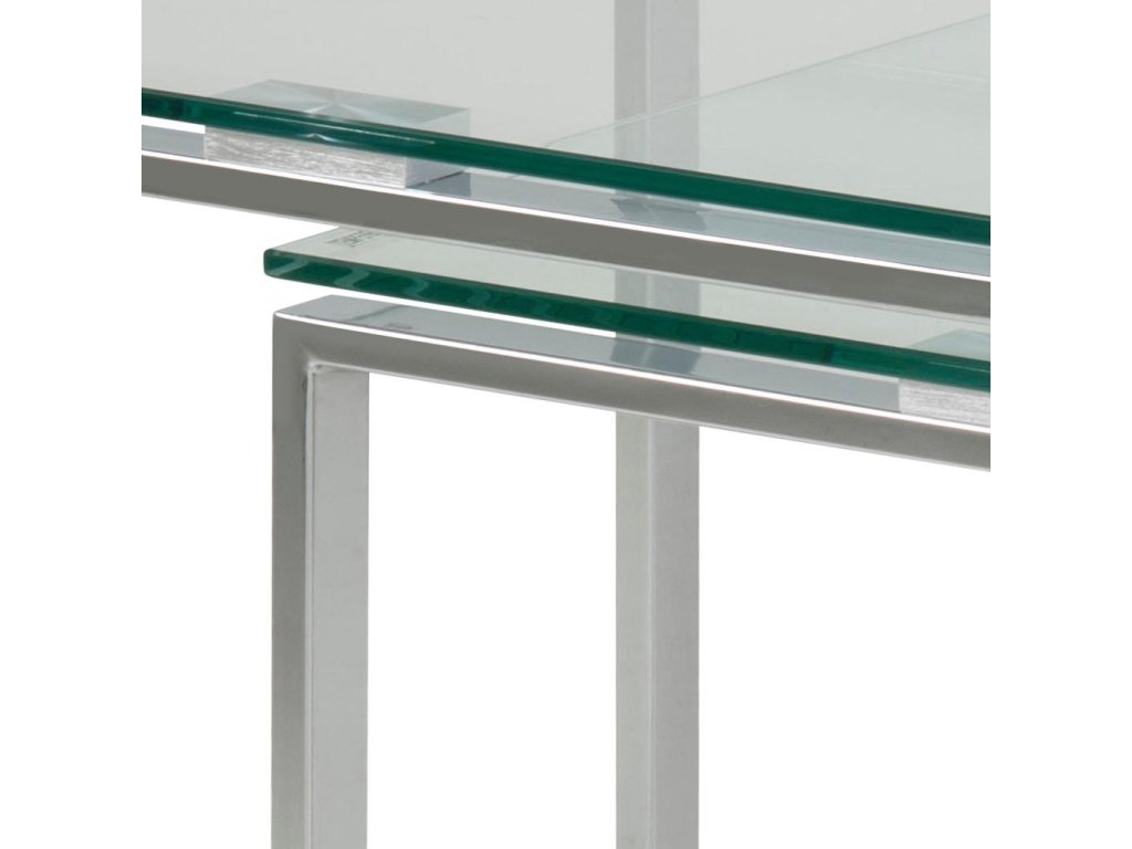 Tato elegantní třídílná souprava vnořených stolků představuje nadčasový design pro světlé, vzdušné interiéry. Vrchní desky z čirého tvrzeného skla v kombinaci s lesklým chromem působí lehce a sofistikovaně. Díky možnosti zasunutí pod sebe jsou praktické i v menších prostorách.