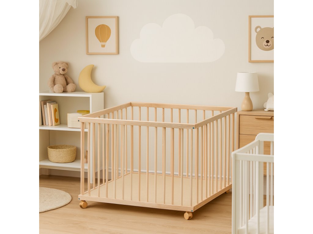 TIP: Pořiďte si k dřevěné ohrádce pro děti i kolečka, případně matraci do ohrádky.