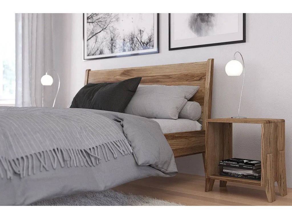 Nadčasový design postele se hodí do každé ložnice. Významnou výhodou dubového dřeva je jeho trvanlivost, odolnost proti mechanickému poškození a výjimečně tvrdý povrch. Povrch postele je pokryt přírodním olejem, což příznivě ovlivňuje jeho dlouhou životnost. Díky tomu si postel zachovává svůj vzhled i během času – bez ztráty odolnosti.