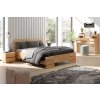 Vysoká verze postele Sandemo s třídílným dřevěným čelem. Dokonalý design a dokonalost zpracování zde jdou ruku v ruce s praktičností. Umístění matrace do výšky téměř 50 cm usnadňuje vstávání z postele. Vybrat si můžete ze 6 barev dřeva a 6 rozměrů postele.
