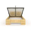 Dřevěná postel z borovice ve vyšší verzi Sandemo High disponuje klasickým třídílným dřevěným čelem. Trendový design a detailní zpracování v ničem nezaostávají za její praktičností, která je korunována velkorysým úložným prostorem.