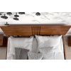 Nadčasová dřevěná postel vyrobená s důrazem na stabilitu. Té dopomáhají vysoké dvojité nohy, které zároveň zajišťují odpočinek ve správné poloze a usnadňují čištění prostoru pod postelí. Minimalistické čelo je zdobeno svislým rýhováním. Na výběr ve 4 šířkách a 6 barvách dřeva.