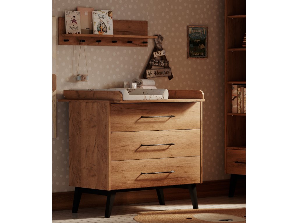 Přebalovací pult 75,7 x 100 cm na komodu Retro se 3 zásuvkami, který výrazně usnadní každodenní přebalování a péči o dítě. Výhodou jeho upevnění na komodu je, že budete mít vždy po ruce plenky, mastičky a oblečení pro vaše ratolesti.