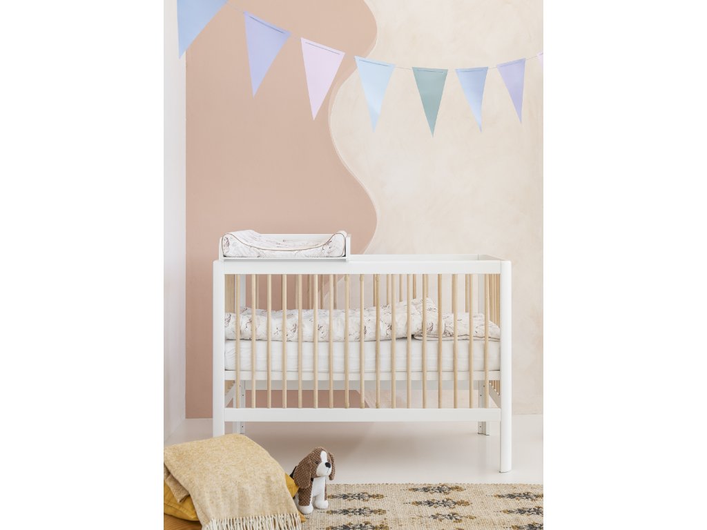 Bílý přebalovací pult se jednoduše upevní na postýlku Pure a poskytuje bezpečný prostor pro přebalování miminka. Díky bílé barvě dokonale ladí s postýlkou a vytváří čistý, jemný dojem. Šetří místo a usnadňuje péči o dítě.