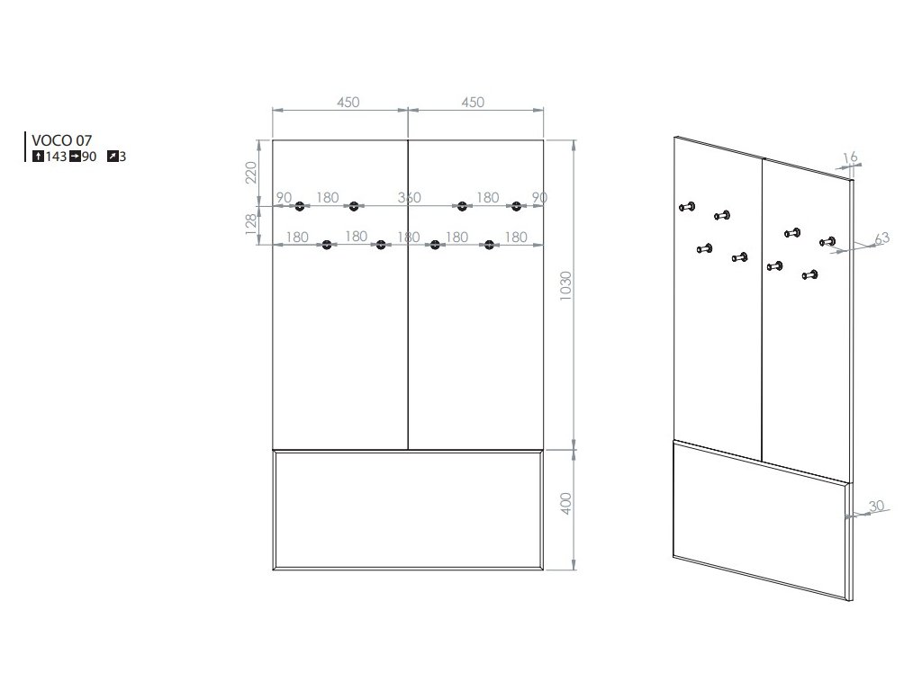 Jemné kašmírové provedení panelu krásně ladí s ostatními prvky kolekce Voco a díky svému minimalistickému stylu se stane praktickým i dekorativním prvkem každé předsíně. Panel je navržen tak, aby se dal jednoduše kombinovat s botníky nebo skříněmi ze stejné série.