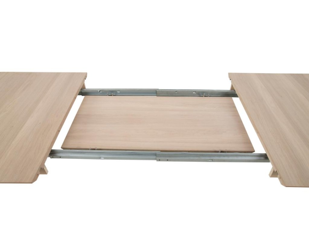 Souprava 2 přídavných desek z bílé pigmentované dubové dýhy prodlouží stůl Century až o 100 cm. Povrchová úprava olejem zvýrazňuje přirozený vzhled dřeva. Elegantní způsob, jak rozšířit jídelní prostor. Ideální pro hostiny a rodinné oslavy.