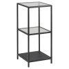 Malý regál Seaford 3 nabízí praktické a stylové řešení pro vystavení či uskladnění knih a doplňků. Kombinace čirého skla a černé ocelové konstrukce dodává interiéru moderní industriální vzhled. Kompaktní rozměry jej předurčují do menších prostor, kde vynikne svou vzdušností.