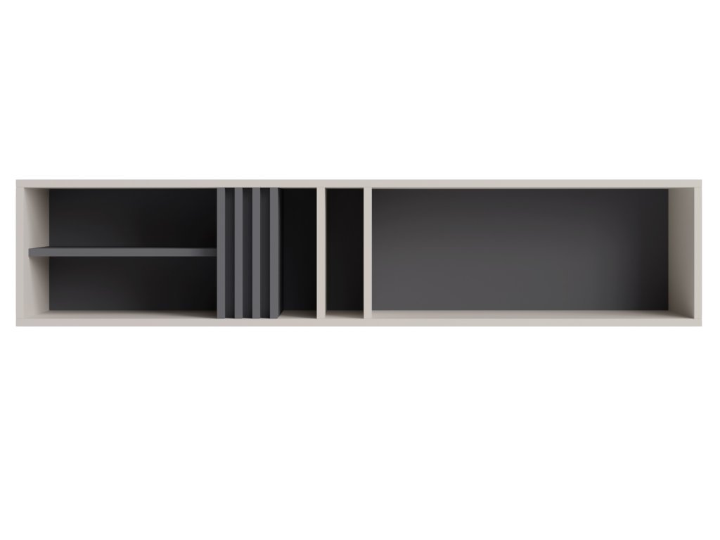 Model je vyroben v kombinaci barev kašmírově béžové a antracit. Polici můžete zavěsit nad komodu, psací stůl či gauč. Je snadno kombinovatelná s dalším nábytkem z kolekce Allmo. Police je vyrobena z laminované desky zakončené ABS hranami.