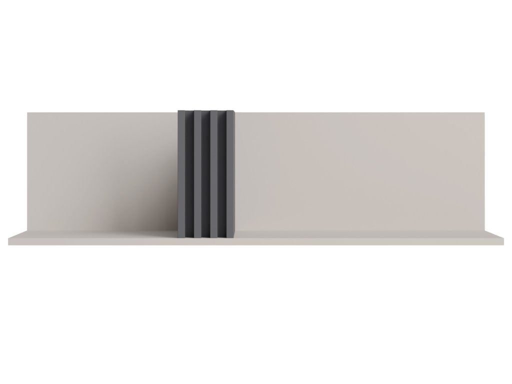 Model je vyroben v kombinaci barev kašmírově béžové a antracit. Polici můžete zavěsit nad komodu, psací stůl či gauč. Je snadno kombinovatelná s dalším nábytkem z kolekce Allmo. Police je vyrobena z laminované desky zakončené ABS hranami.