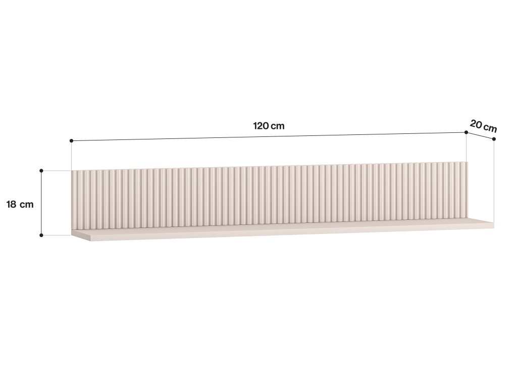 Nástěnná police Dunea 09 je praktickým řešením pro úsporu místa a zároveň elegantním doplňkem dětského či obývacího pokoje. S rozměry 120 × 20 × 18 cm (Š × H × V) nabízí prostor pro knihy, dekorace nebo drobnosti, které chcete mít na očích.