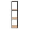 Štíhlý obdélníkový rám z matné černé oceli nese čtyři pevné police v dekoru divokého dubu. Kontrast chladného kovu a teplého dřevodekoru okamžitě přitáhne pohled a prohlubuje prostor – ať už ji zavěsíte u pohovky, do předsíně nebo nad pracovní stůl. Vysoký, úzký formát (pouze 24 cm na šířku) se vejde i na úzký pás stěny, ale díky výšce 108 cm nabídne dostatek místa pro rostliny, svíčky či malou sbírku knih.