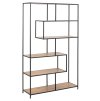 Regál Seaford v industriálním stylu spojuje teplý dekor divokého dubu s černou kovovou konstrukcí. Asymetrické uspořádání polic umožňuje kreativní uložení knih a dekorací. Ideální doplněk do moderních obýváků nebo kanceláří. Působí vzdušně i přes svou velikost.