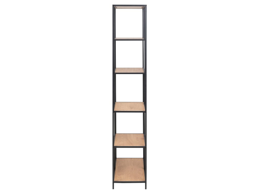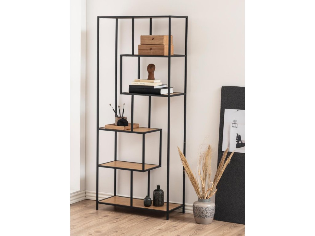 Vysoký regál Seaford – asymetrický divoký dub / černá ocel