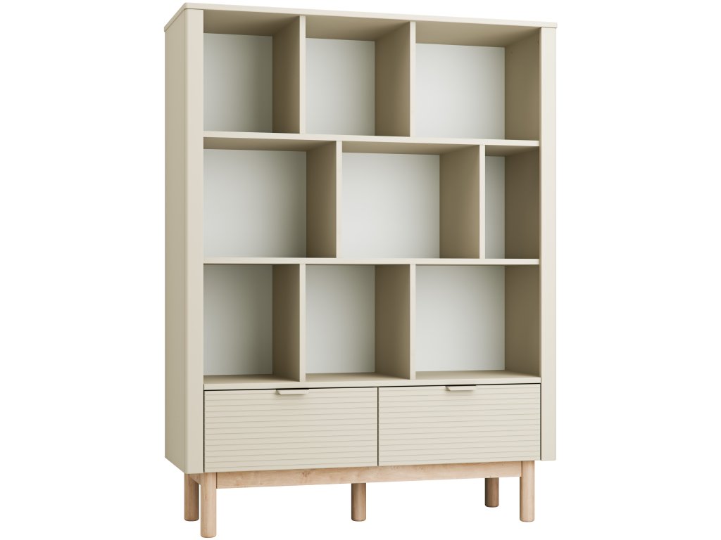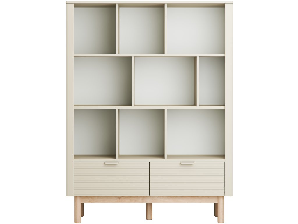 Velký a prostorný regál/knihovna z kolekce Miloo má asymetrické uspořádání 9 polic různých šířek v, přičemž nabízí další úložný prostor. Nabízí bohatý prostor pro uložení hraček, knih, dekorací nebo školních pomůcek, a zajistí dokonalý přehled ve věcech vašich ratolestí.