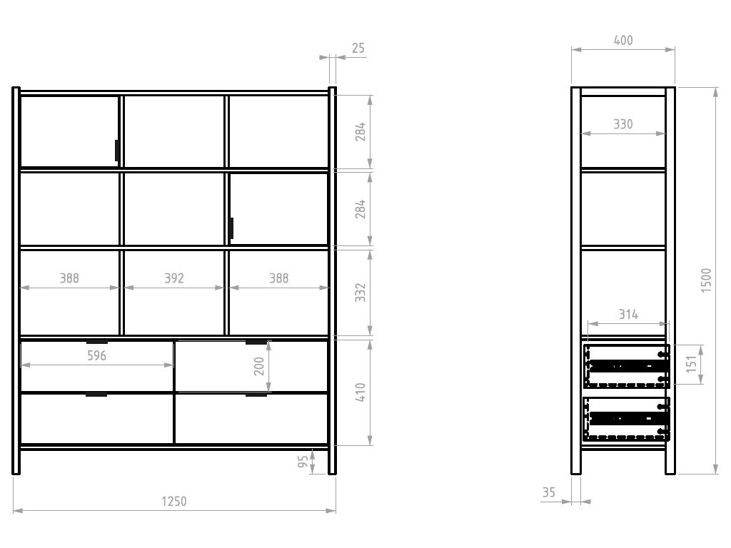 Regál Versa (150 cm) je ideálním řešením pro přehledné uložení knih, hraček, školních potřeb či dekorací. Díky čtyřm zásuvkám, dvěma uzavřeným skříňkám a otevřeným policím nabízí dostatek prostoru pro děti i teenagery.
