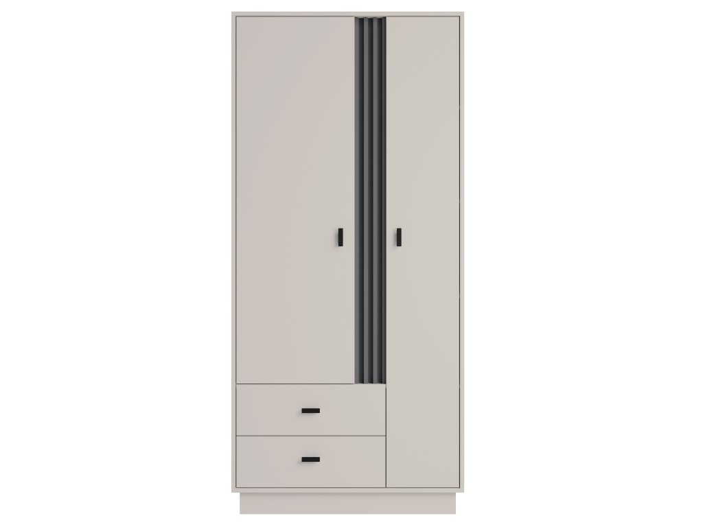 Elegantní dvoudveřová skříň Allmo 01 poskytne dostatek úložného prostoru v ložnici. Skříň vyniká svým jednoduchým designem. Je vyrobena v kombinaci 2 barev - kašmírově béžové a antracitu.