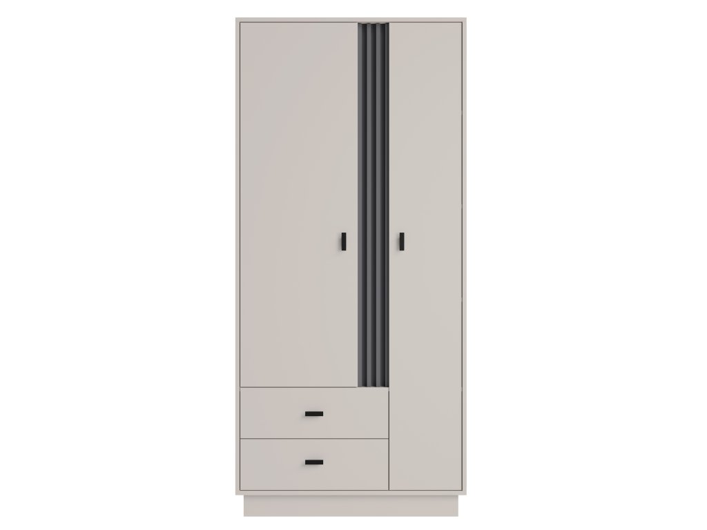 Elegantní dvoudveřová skříň Allmo 02 poskytne dostatek úložného prostoru v ložnici. Skříň vyniká svým jednoduchým designem. Je vyrobena v kombinaci 2 barev - kašmírově béžová a antracit.