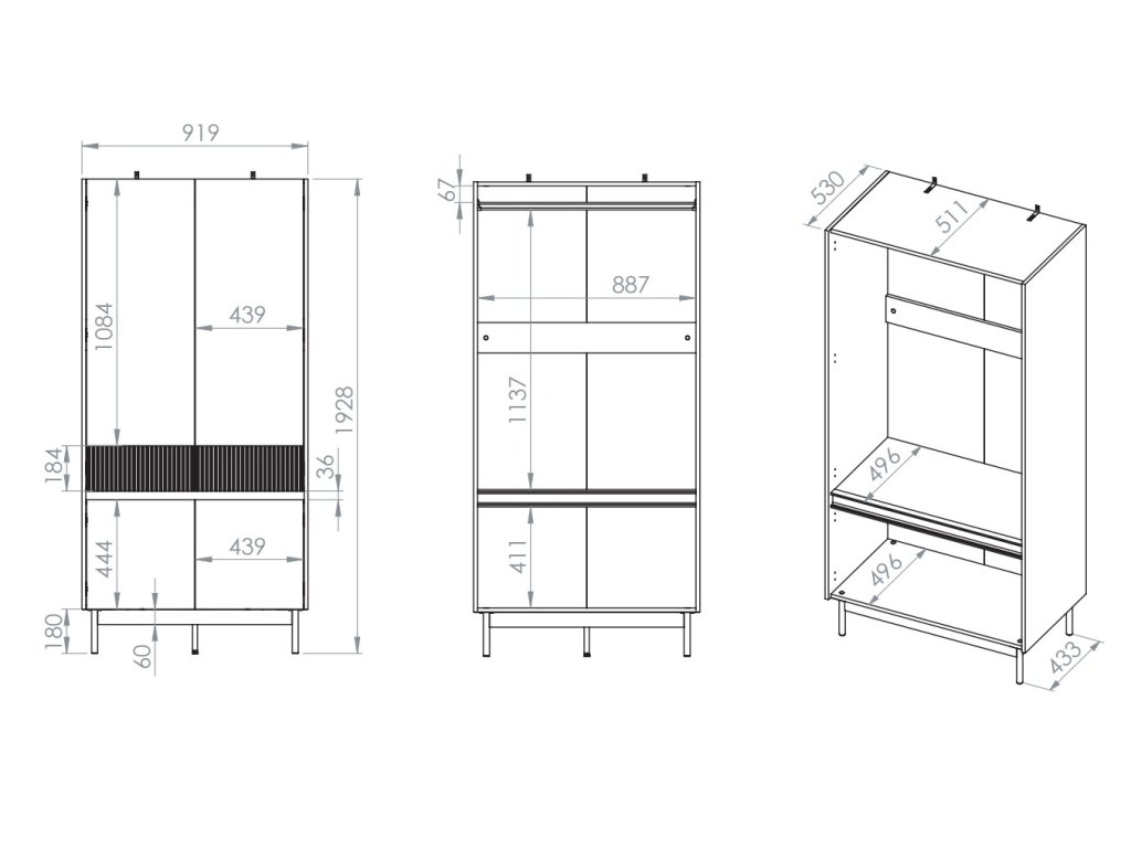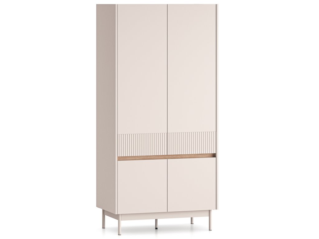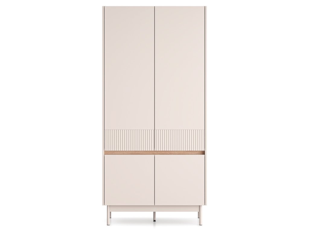 Čtyřdveřová šatní skříň Dunea 01 je funkční a elegantní doplněk do ložnice či předsíně, který pomáhá udržovat pořádek v oblečení i doplňcích. Vnitřní prostor s pevným šatní držákem po celé šířce umožňuje pohodlné zavěšení šatů, kabátů nebo košil, zatímco spodní otevřená část poslouží k uložení textilií jako ložní prádlo či ručníky.