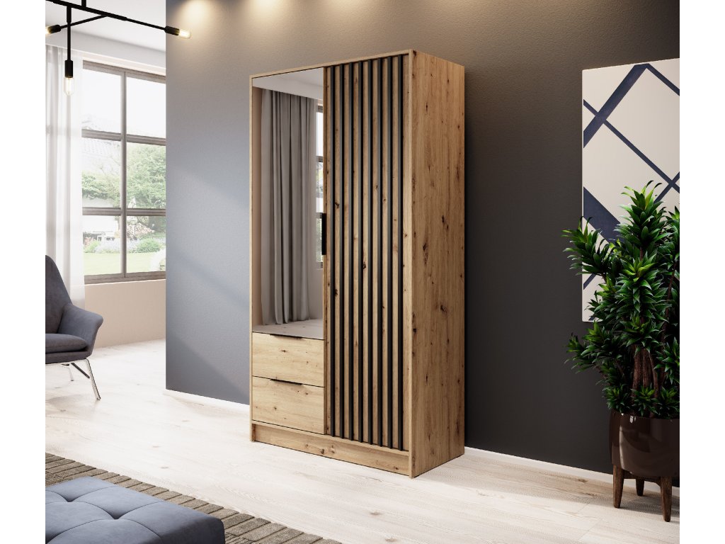 Šatní skříň se zrcadlem Nelly 2D – dub artisan / černá