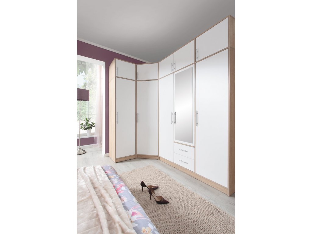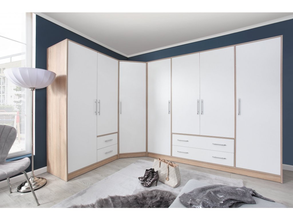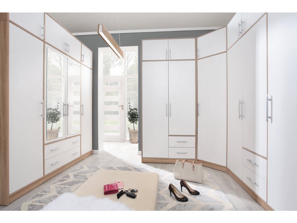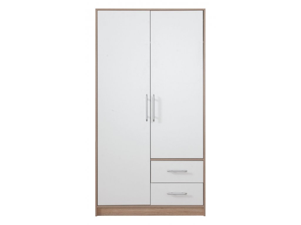 Šatní skříň Smart SR3 je vyrobená z laminované desky, snadno se udržuje a čistí. Skříň disponuje ABS hranami, což výrazně zvyšuje její odolnost proti poškození. K dispozici v provedení dub sonoma-bílá.