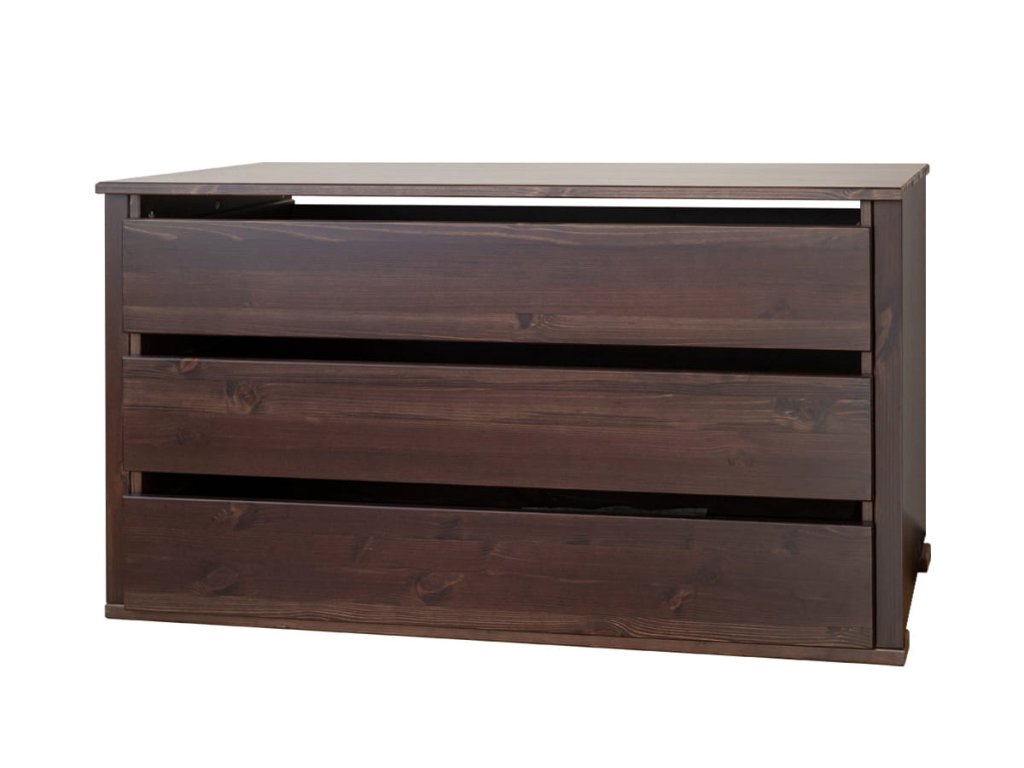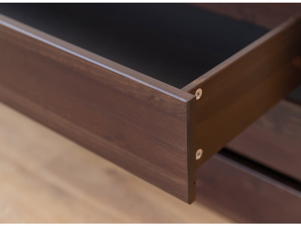Modul do šatní skříně Rosella 08 – 116 cm se třemi zásuvkami je navržen jako praktický úložný prvek, který doplňuje šatní skříně Rosella 3D a Rosella 4D a zároveň respektuje jejich designový jazyk. Vyrobený z masivního borovicového dřeva, ošetřený ekologickou barvou na vodní bázi se 70% krytím, modul si zachovává přírodní vzhled a vysokou odolnost. Teplý tabákový tón harmonizuje se zbytkem nábytku a dodává prostoru příjemnou atmosféru.