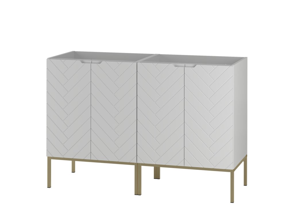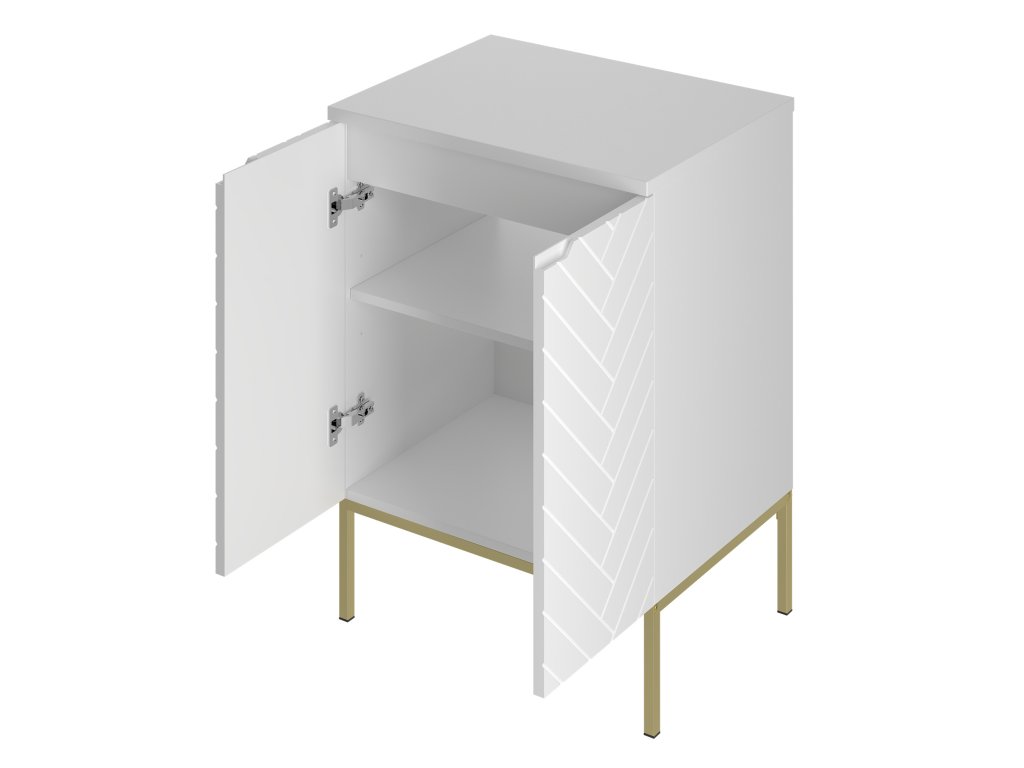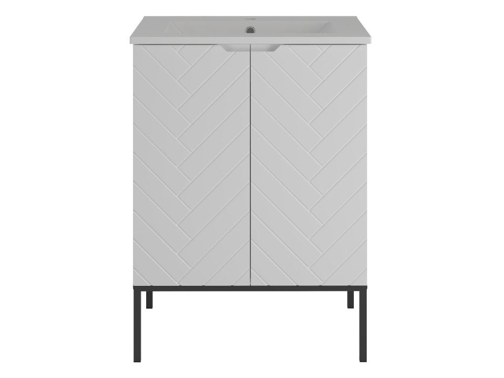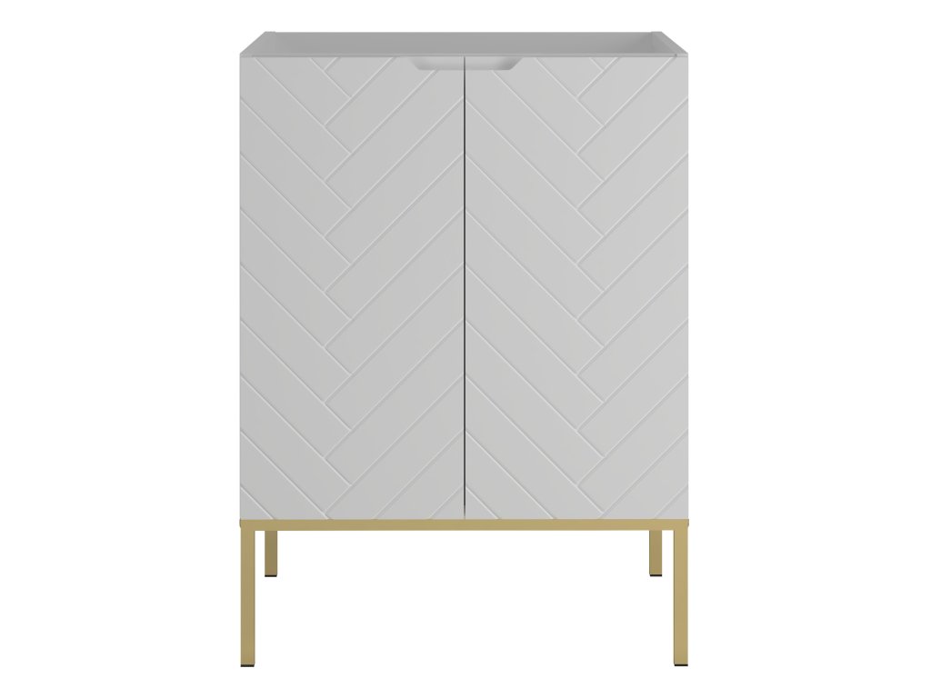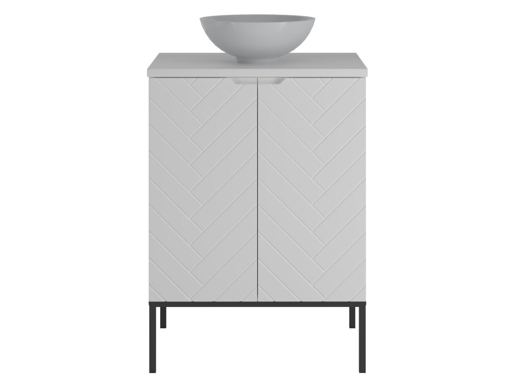 Koupelnová skříňka Aspen 09 v matné bílé barvě o šířce 60 cm je dostupná ve čtyřech variantách: bez vrchní desky, s vrchní deskou, s umyvadlem na desce nebo se zápustným umyvadlem. Frézovaná čela se stromečkovým vzorem a bezúchytkový design dodávají koupelně moderní minimalismus. Tato kompaktní skříňka je ideálním řešením pro menší prostory, které vyžadují praktická a estetická řešení.
